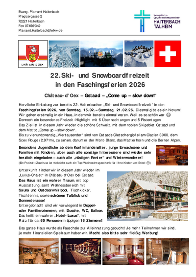 Herzliche Einladung zur Skifreizeit 2026 - 15.-21.02.2026
