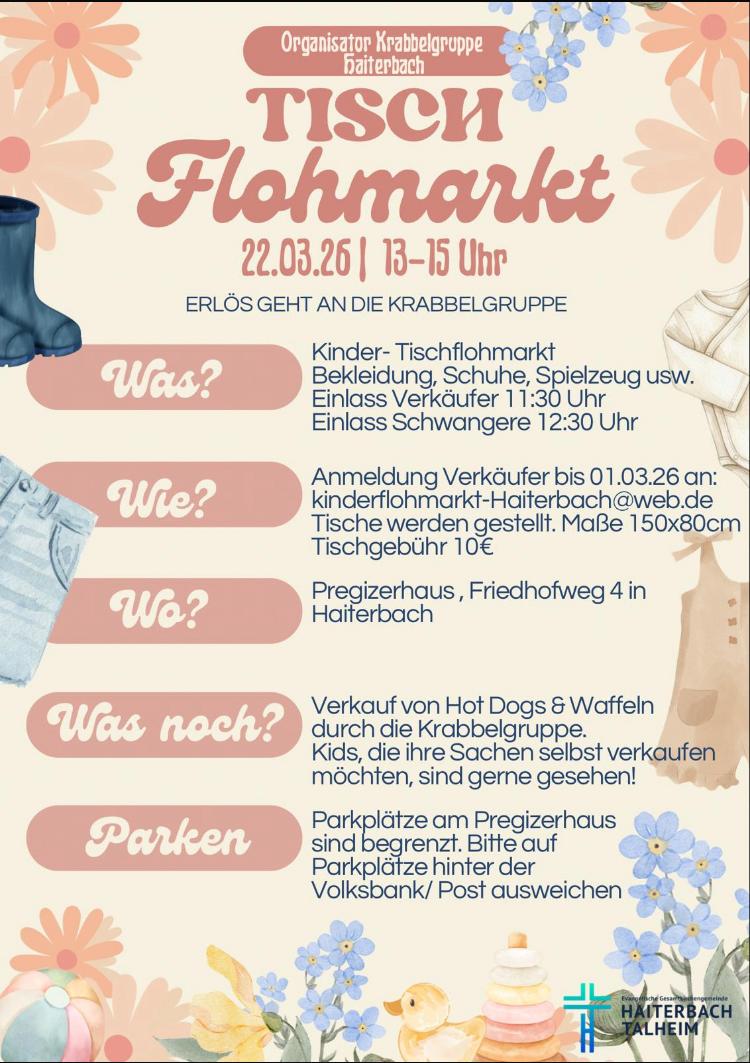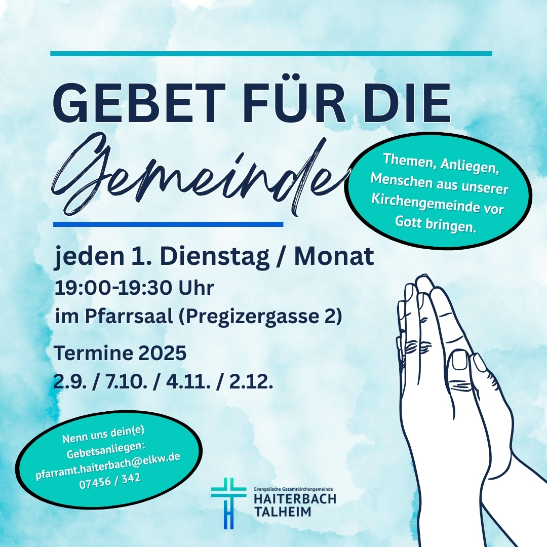 Die Kirchengemeinde besteht aus den Teilgemeinden Haiterbach und Talheim. Zusammen gehören rund 2.000 Gemeindeglieder zur Gemeinschaft. Wir sind Teil der Evangelischen Landeskirche Württemberg und Körperschaft des öffentlichen Rechts. Die Gemeinde liegt im Nordschwarzwald nahe Nagold und gehört zum Kirchenbezirk Calw-Nagold.